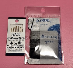 ウールと綿と素材が違うためその糸が目立つのが着ていて気になってきて、ではウールで補修すればいんじゃねと思い付き、大きい糸と針を準備してみた。