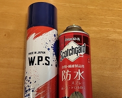 さほど頻繁に使うことがないせいか、空になったスコッチガードのほうは、年数経過に伴いノズルが詰まってきて霧状ではなくほぼストレートに。